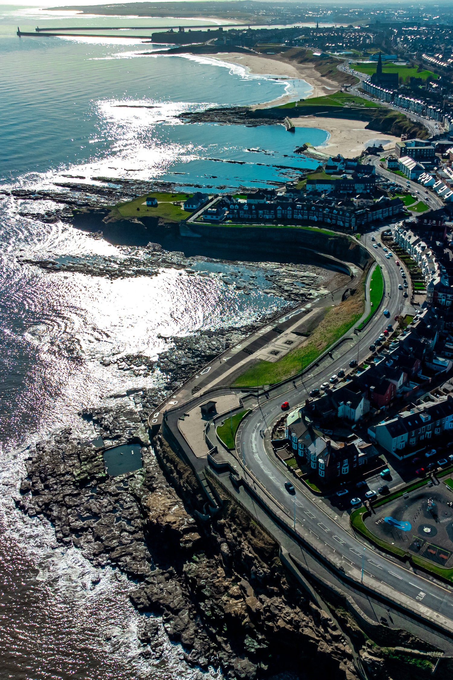Drone over Cullercoats and Tynemouth.