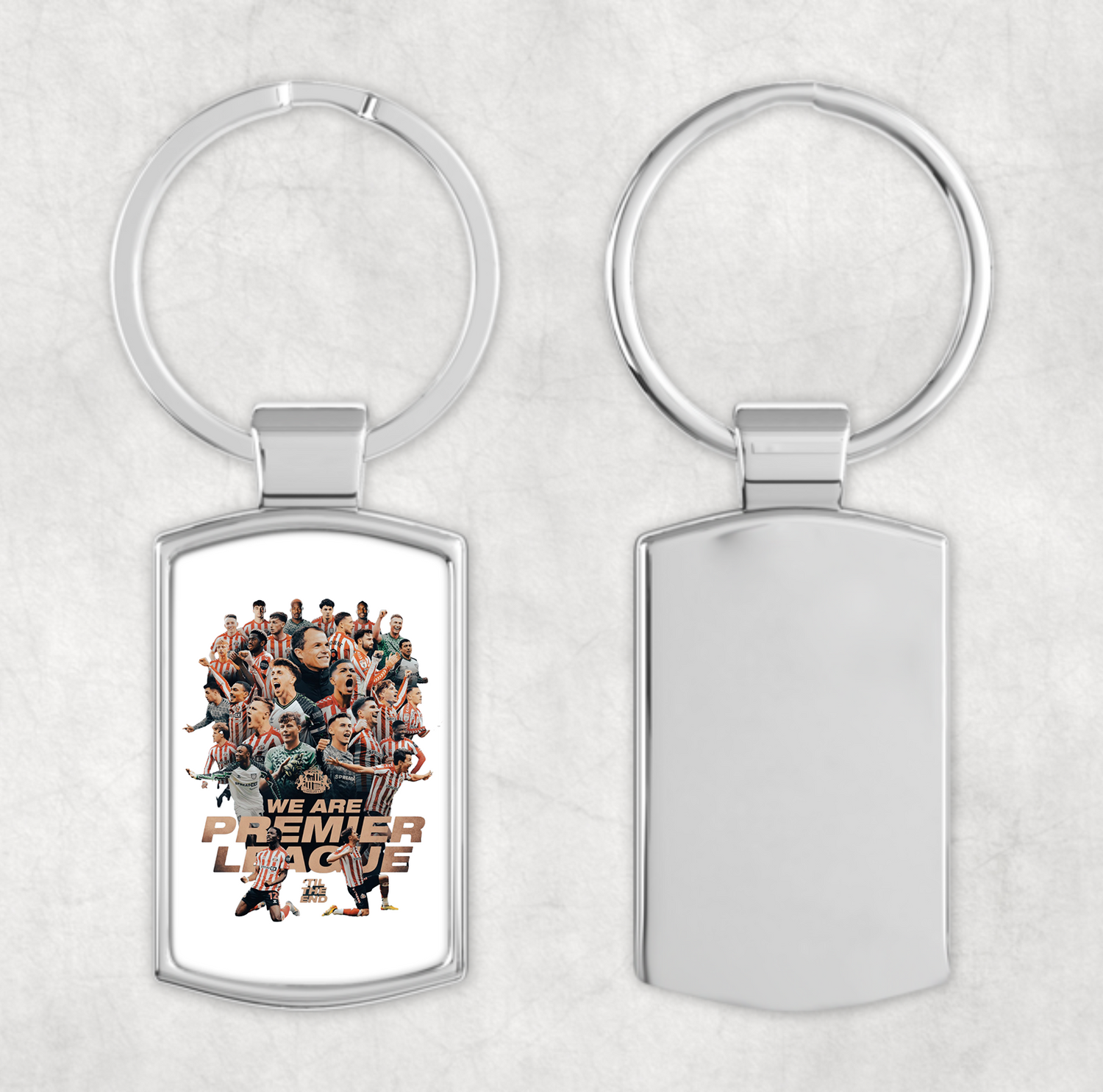 Show off your team pride wherever you go with our durable, high-quality stainless steel keyrings, custom printed with your favourite football team’s colours and crest. Whether you're heading to the match or just out and about, these sleek keyrings are a perfect way to support your club every day.