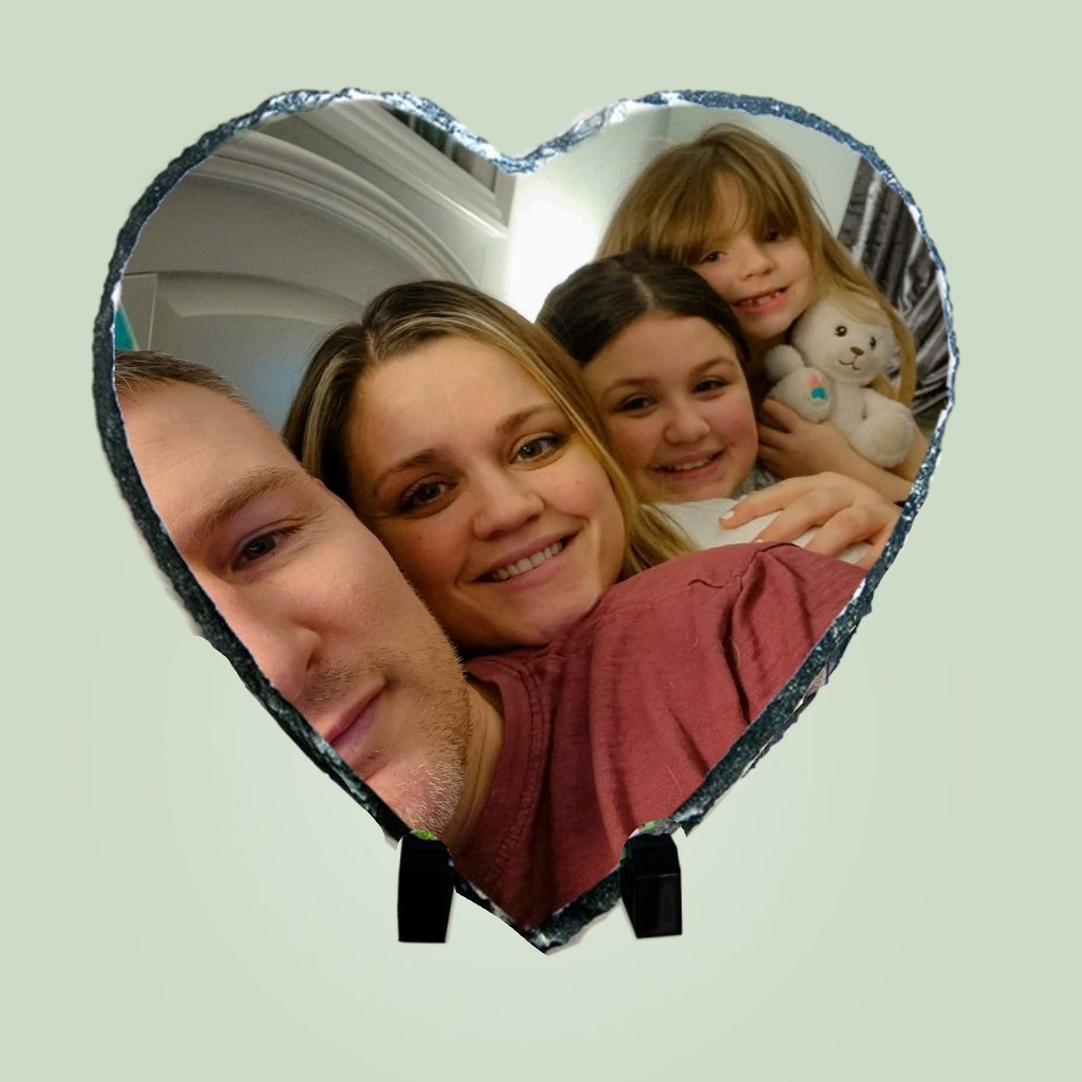Turn your favourite memories into a beautiful keepsake with our heart-shaped photo slate. Crafted from natural stone with a glossy finish, each slate is unique in texture and shape, making it the perfect canvas for your photo. Simply upload your image, and we’ll print it directly onto the slate with vibrant, long-lasting colour.